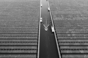 筆者在現(xiàn)場(chǎng)看到,波光粼粼的水面上,藍(lán)色的光伏板構(gòu)成一排排龐大的陣列,一眼望去無(wú)邊無(wú)際,蔚為壯觀。不時(shí)有白鷺翩翩飛舞,有的還站在光伏板上新奇地觀望著眼前的一切。