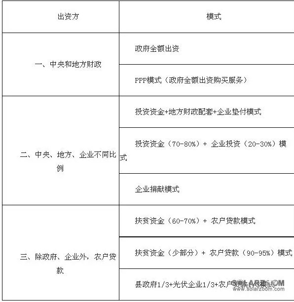 啟動(dòng)資金不足似乎是阻攔光伏扶貧順利推進(jìn)的最大的一道“坎”,經(jīng)過2年多的試點(diǎn)摸索,我國目前有如下幾種光伏扶貧融資模式: