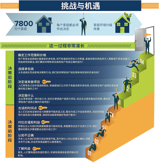 很多想對住宅進行深度節能改造的用戶都會面臨一個極具挑戰的推進過程,涉及各種復雜的問題,如下圖所示。正是由于這個原因,很多人都放棄了對住宅能效的追求。