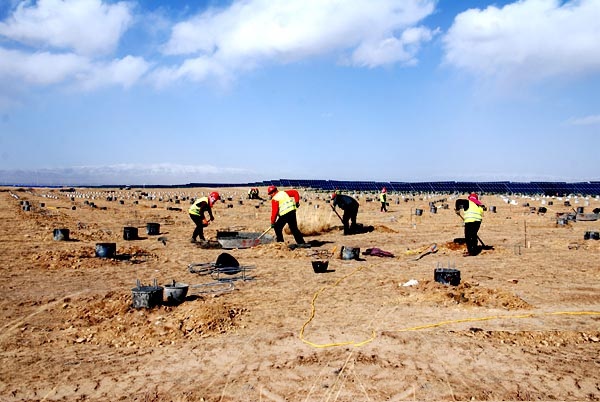 截止3月20日,建設(shè)項目已打孔20個子陣,澆筑4個子陣。3個匯集站基礎(chǔ)開挖澆筑完成,為項目“5.30”并網(wǎng)發(fā)電奠定了基礎(chǔ),爭取了時間。