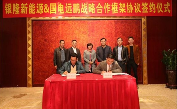 2017年1月珠海海銀隆新能源有限公司與國電遠鵬能源科技股份有限公司在珠海簽訂戰略合作協議,雙方整合資本及技術資源,響應國家政策,建設風光儲一體的儲能電站,實現低成本、高效率的運營服務體系;充分發揮各自在發電側、用電側、售電業務,分布式屋頂、智能微電網及區域配電網市場、資本與金融、技術創新及管理、運營品牌等方面優勢,劍指蓬勃發展的風、光、儲及電動汽車充電樁為基礎的新能源業務。