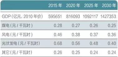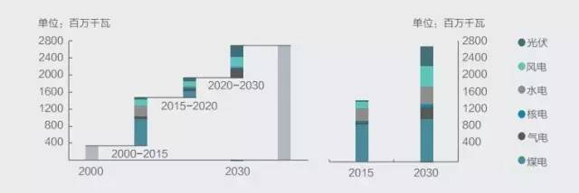 在2015-2030年中國電力系統發展情景下:
