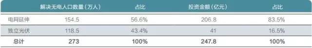 獨立光伏在解決偏遠地區無電人口方面具有低投入高產出的特點。國家能源局數據顯示,2013-2015年期間,中國共計投資247.8億元以解決無電人口用電。其中包括電網投資206.8億元,為154.5萬無電人口通電;獨立光伏投資41億元,為118.5萬無電人口通電。獨立光伏投資僅占總投資額的16.5%,卻解決了43.4%的無電人口用電問題,是偏遠地區實現電力供應的最經濟手段。