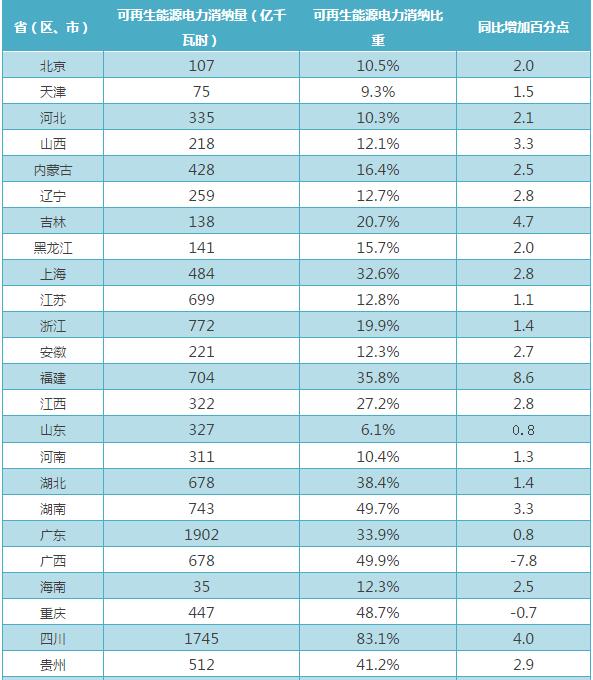 其中,云南、寧夏、青海三省非水電可再生能源消納比重增長較快,分別上升7.4、5.7和4.8個百分點。