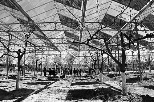 5月2日,在臨汾市永和縣閣底鄉(xiāng)石家灣村紅棗光伏大棚試點(diǎn)項(xiàng)目現(xiàn)場(chǎng),眾多游客及附近農(nóng)戶正在參觀取經(jīng)。
