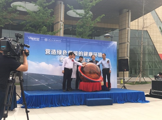 5月4日,北京的天空塵沙肆虐,灰暗陰沉。北京大學(xué)國際醫(yī)院東門草坪迎來了由漢能——九朗投資并承建的北京大學(xué)國際醫(yī)院582.32KWP分布式光伏電站的項目落成暨并網(wǎng)儀式,活動旨在倡導(dǎo)綠色低碳健康環(huán)保的生活理念,尤其在當(dāng)下塵沙飛揚的惡劣空氣之下,更突顯出了此次活動意義之重大。