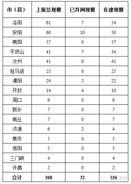 2016年11月3日,河南省《2016年三季度河南省光伏電站建設情況》,介紹了河南省2016年前三季度的光伏電站建設情況: