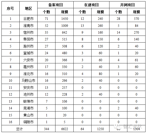 2016年10月27日,安徽省能源局發布了《我省先建先得光伏電站建設形勢分析報告》,介紹了安徽省的光伏地面電站開發情況。