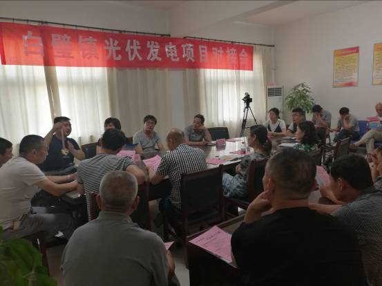 安陽市委統戰部駐安陽縣白璧鎮西邵科村黨支部第一書記張宇寧積極發揮牽線搭橋的作用,積極向白璧鎮黨委政府匯報,并協調市電視臺、安陽市鳳之陽太陽能有限公司,最終促成并于6月2日上午召開了白璧鎮光伏發電項目對接會,鎮主管扶貧的領導魏瑞霞、市電視臺廣告部副主任李志斌、鳳之陽公司劉進山經理、鎮東北片7個村的駐村第一書記和村支書(主任)20多人參加了對接會。