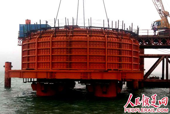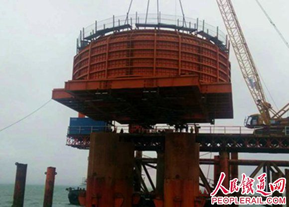 首個(gè)鋼套箱總重量達(dá)到220噸,高度達(dá)到8米(包含牛腿高度),鋼套箱平面面積達(dá)到360平方米,鋼套箱側(cè)板與底板面積達(dá)到670平方米。