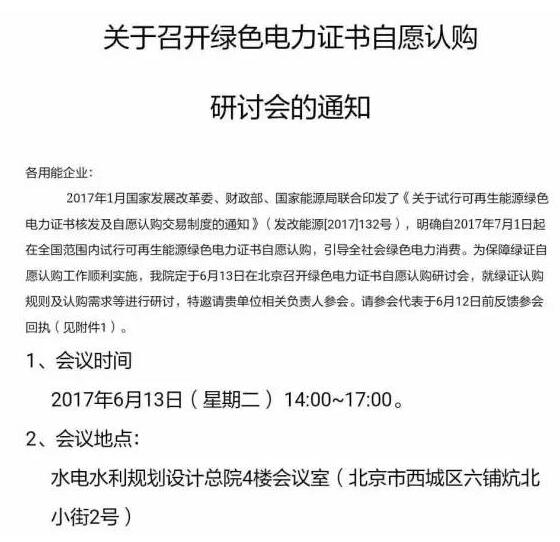 與此同時,據北極星太陽能光伏網了解,6月13日,《綠色電力證書自愿認購研討會》將于北京舉行,就綠證的認購規則和認購需求等進行研討。詳細如下: