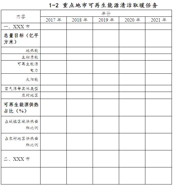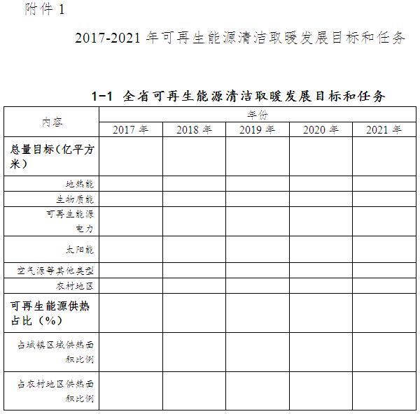 附件:1. 2017-2021年可再生能源清潔取暖發展目標和任務