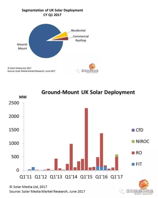 英國可再生能源義務(wù)證書(Renewable Energy Certificate)對地面光伏項目的激勵政策在2017年3月31日到期,英國光伏開發(fā)商在2017年第1季度搶裝了640兆瓦爭取補貼的最后一班車。再往后,英國光伏就主要靠市場競爭力來說話了。
