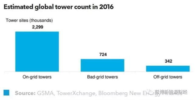 能源占據(jù)偏遠(yuǎn)地區(qū)通訊塔(Cellular Tower)運(yùn)營成本很大的一部分,傳統(tǒng)而言一般依賴于柴油發(fā)電,而這占據(jù)了其運(yùn)營成本的40%-50%。由太陽能、鋰離子電池或甚至是燃料電池組合而成的混合能源系統(tǒng),能夠以較低的成本為全世界100萬處于供電不穩(wěn)定地區(qū)的通迅塔,從而降低成本并提供充足穩(wěn)定的電力。