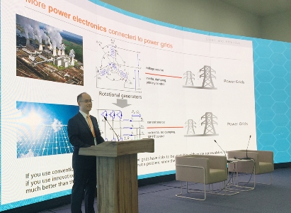 作為大會主要發(fā)言嘉賓,顧博士在其題為“Advanced power electronics technologies for future energy networks”的主題演講中,重點描繪了未來以高滲透率可再生能源為特征的新型能源網(wǎng)絡(luò),分析了由此帶來的機會和挑戰(zhàn),并介紹了一系列以光伏逆變器為核心的先進電力電子技術(shù),包括基于SiC和多電平的高效高功率密度的逆變技術(shù),對電網(wǎng)起支撐作用的VSG技術(shù)和SVG技術(shù),對光伏組件起保護和修復作用的反PID技術(shù)。他認為,未來能源互聯(lián)網(wǎng)是大勢所趨,能源互聯(lián)將以勢不可擋的力量與不同行業(yè)產(chǎn)生新的融合,應用場景愈發(fā)廣泛。陽光電源將憑借自身在可再生能源領(lǐng)域的成功經(jīng)驗和先進技術(shù),與傳統(tǒng)行業(yè)攜手,共創(chuàng)美好世界。