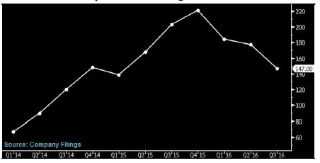 由于購買電腦的協議價下跌,美國用于公用事業供電的太陽能需求增長放緩。這可能影響美國公用事業項目風險敞口高的公司,封殺他們2017年擴大市場份額的機會。First Solar和SunPower都屬于此類公司(這類項目2016年創造的營業收入占全美太陽能公司總收入的85%)。