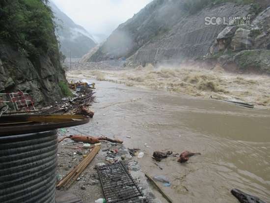6月12日-6月16日期間,雙江口水電站壩址以上流域連降暴雨,出行道路被洪水沖斷,施工場地及住宿營地險情多發(fā)。災情發(fā)生后,項目部迅速啟動Ⅳ級防洪度汛應急預案,成立以常務副總經理華正超為組長的抗洪救災領導小組,班子成員24小時輪流值班,細化落實“防、搶、撤”措施,全面安排部署度汛搶險工作。成立2支抗洪搶險突擊隊,迅速轉移安置人員300余人,加緊發(fā)放防汛物資。同時,疏通白灣鄉(xiāng)的G317國道和金川211省道垮塌路段。