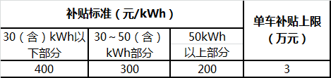 2. 純電動乘用車動力電池系統的質量能量密度不低于90Wh/kg,對高于120Wh/kg的按1.1倍給予補貼。