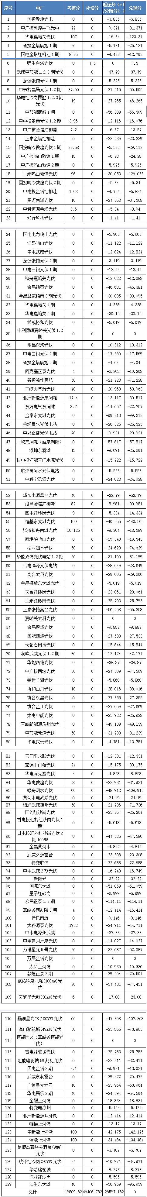 根據(jù)西北能源監(jiān)管局《關于印發(fā)西北區(qū)域發(fā)電廠并網(wǎng)運行管理實施細則及西北區(qū)域并網(wǎng)發(fā)電廠輔助服務管理實施細則的通知》(西北能監(jiān)市場﹝2015﹞28號)、《關于調整“兩個細則”部分考核、補償項目執(zhí)行標準的通知》(西北能監(jiān)市場﹝2015﹞49號)規(guī)定,2017年5月份甘肅電網(wǎng)“兩個細則”考核補償結果完成復核,現(xiàn)予公布,請依據(jù)附件結算。