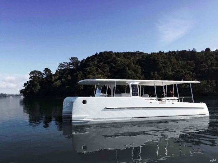 據外媒報道,荷蘭Soel Yachts公司本周在新西蘭推出了一款稱為SoelCat 12的電動雙體船,展示了一種更清潔的水上交通工具。零排放的SoelCat 12能夠運載16名乘客,不需要燃料。而是依靠裝在船頂的8.6KWp太陽能電池陣列提供動力。