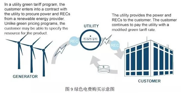 不同于前者,綠色營銷適用于已經放開電力管制的地區,電力用戶可選擇從原有的公共事業公司購電,也可選擇其他競爭性電力供應商。同綠色標價類似,電力用戶需支付額外費用給電力供應方,以覆蓋REC的價格。