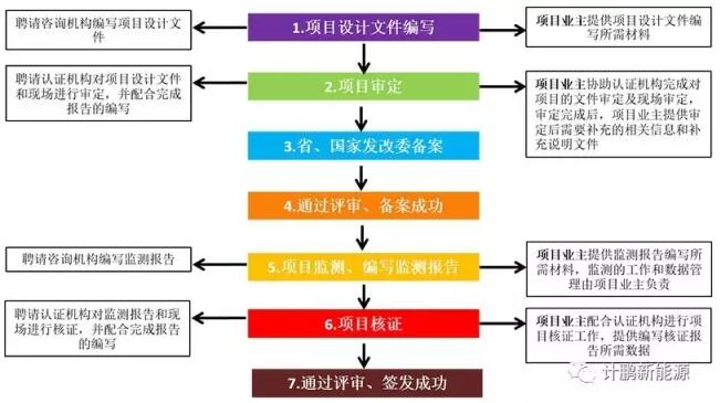 由于CCER項目申請需要準(zhǔn)備的資料較多,部分類型項目的專業(yè)性較強,大部分項目業(yè)主不具備自主開發(fā)CCER項目的能力和人力,因此現(xiàn)在大多項目業(yè)主會聘請專業(yè)的咨詢機構(gòu),開發(fā)審定與核證項目。另外,業(yè)主還需聘請第三方審核機構(gòu),對項目申請材料進行審核,通過第三方審核的項目才可以報送發(fā)改委進行備案。一般開發(fā)流程如下圖所示: