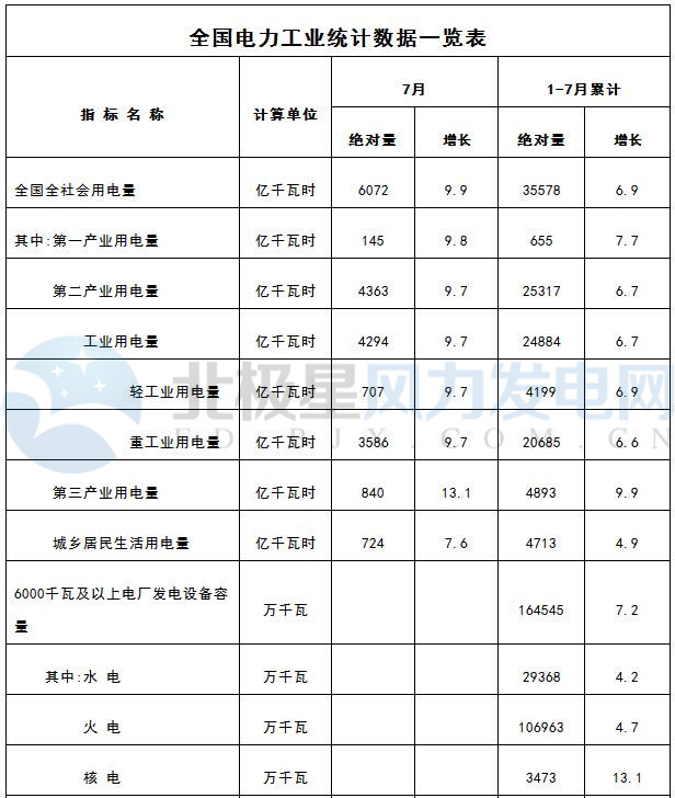 國家能源局昨日發(fā)布1-6月份全國電力工業(yè)統(tǒng)計數(shù)據(jù)。數(shù)據(jù)顯示,1-7月全國6000千瓦及以上風電發(fā)電設(shè)備容量為15522萬千瓦,同比增12.5%。以下為具體數(shù)據(jù):