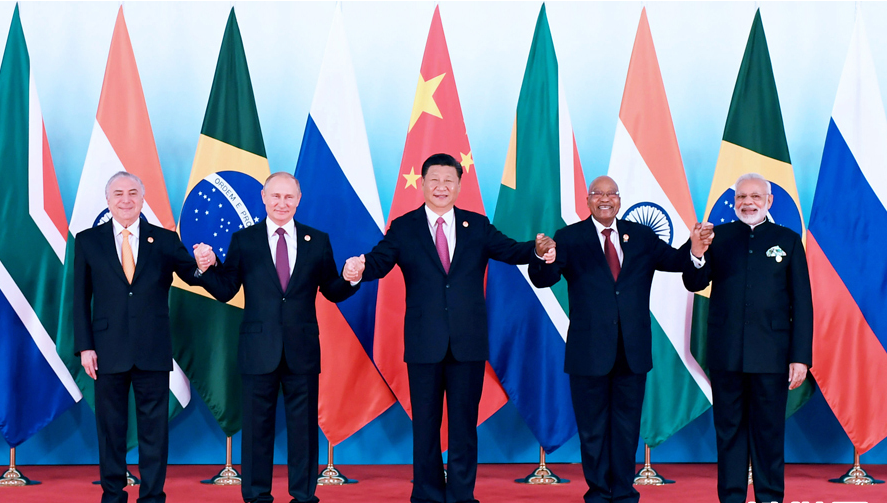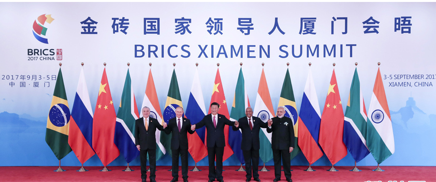 9月4日,金磚國家領導人第九次會晤在廈門國際會議中心舉行。國家主席習近平主持會晤并發表題為《深化金磚伙伴關系 開辟更加光明未來》的重要講話。南非總統祖馬、巴西總統特梅爾、俄羅斯總統普京、印度總理莫迪出席。這是金磚國家領導人集體合影。