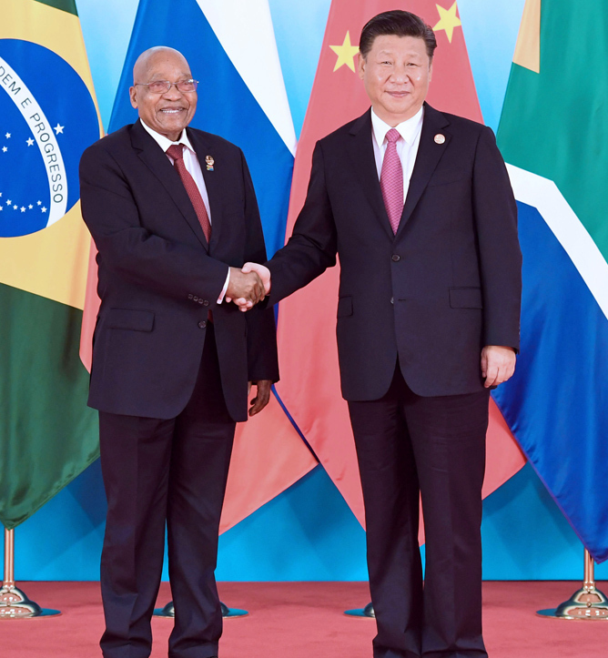9月4日,金磚國家領導人第九次會晤在廈門國際會議中心舉行。國家主席習近平主持會晤并發表題為《深化金磚伙伴關系 開辟更加光明未來》的重要講話。這是習近平迎接南非總統祖馬。