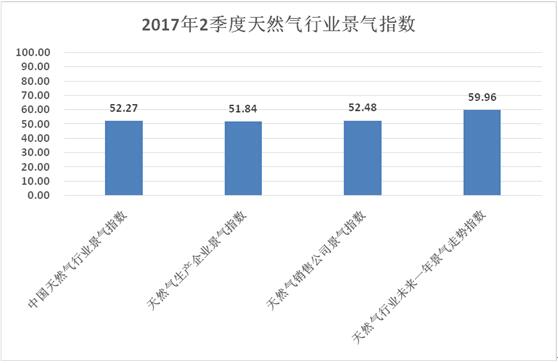 2017年3季度中國天然氣行業景氣指數為53.67,處于一般景氣狀態,與2017年2季度景氣指數52.27相比有所上升,季節景氣變動系數為1.027。從統計數據來看,與2017年2季度比較:宏觀經濟指標基本保持不變,天然氣進口狀態指標有一定幅度下降,天然氣行業專家判斷指標有一定幅度上升,天然氣生產企業經營狀態指標和天然氣銷售公司經營狀態指標均有較小幅度上升。因此,2017年3季度中國天然氣行業景氣指數總體呈現上升態勢。 [詳細]