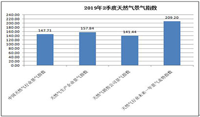 中國天然氣行業景氣指數統計結果顯示:2019年2季度中國天然氣行業景氣指數為147.71,處于較景氣狀態;天然氣生產企業景氣指數為157.84,處于較景氣狀態;天然氣銷售公司景氣指數為141.44,處于較景氣狀態;天然氣行業未來一年景氣走勢指數為209.20,處于很景氣狀態。 [詳細]