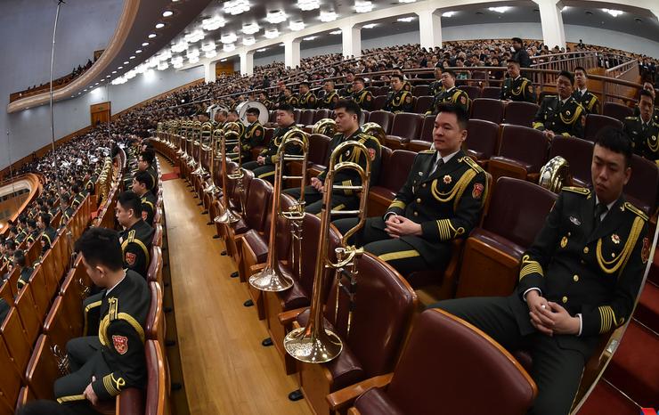 軍樂(lè)團(tuán)整齊落座