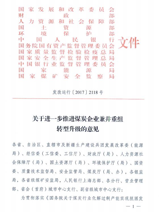 12部委聯合印發《關于進一步推進煤炭企業兼并重組...