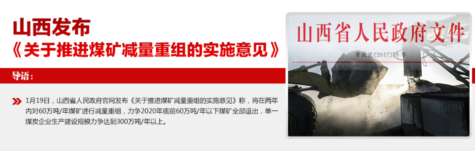 1月19日,山西省人民政府官網(wǎng)發(fā)布《關(guān)于推進(jìn)煤礦減量重組的實施意見》。