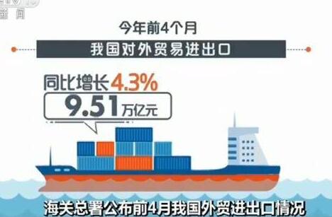 今年前4個月我國外貿進出口增長4.3%