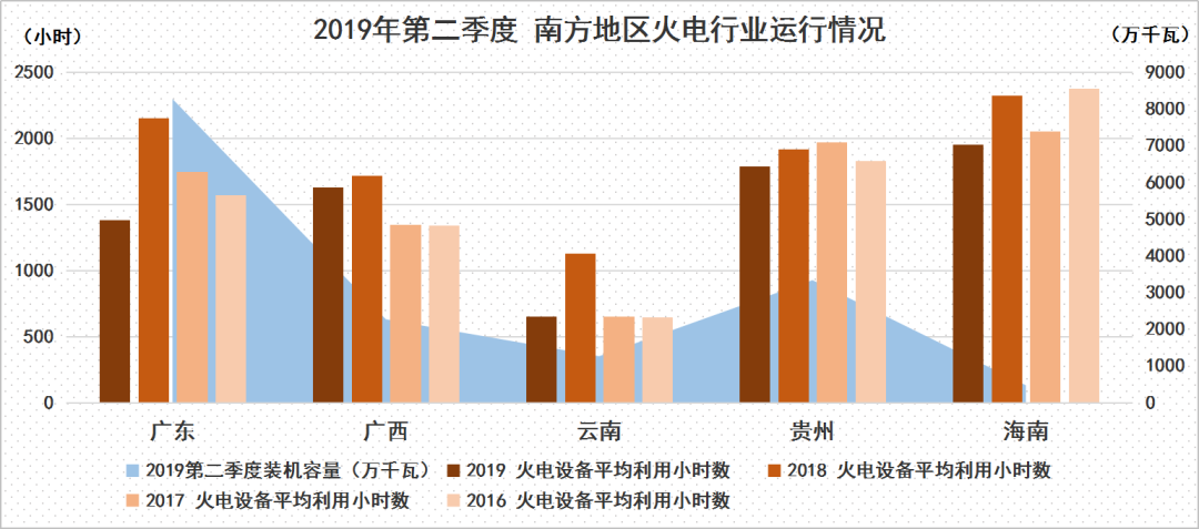 從火電設備平均利用小時數上看,南方地區出現不同程度的下滑,其中廣東、云南、海南下滑幅度分別高達772小時、475小時、374小時,廣西、貴州下滑幅度略小,分別為86小時、133小時,但較去年同期下滑幅度仍然明顯。