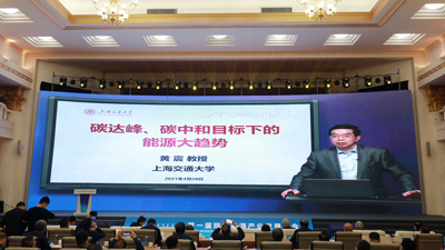 中國工程院院士,上海交通大學(xué)教授、博士生導(dǎo)師、副校長,中國民主促進(jìn)會(huì)中央副主席黃震以視頻方式發(fā)表演講,題目是《碳達(dá)峰碳中和目標(biāo)下的能源大趨勢(shì)》。