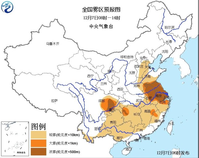 氣象臺預計,從8日到9日晨,江蘇中西部、安徽中東部、浙江中北部、江西東北部等地有大霧,部分地區有能見度不足500米的濃霧。8日夜間,江蘇、安徽中東部、浙江中北部、山東南部、河南東部等地空氣污染氣象條件達4~5級,局地可達6級,不利于空氣中污染物擴散,上述大部地區有中度霾,其中,江蘇西南部、浙江北部、安徽東南部等地的部分地區有重度霾。